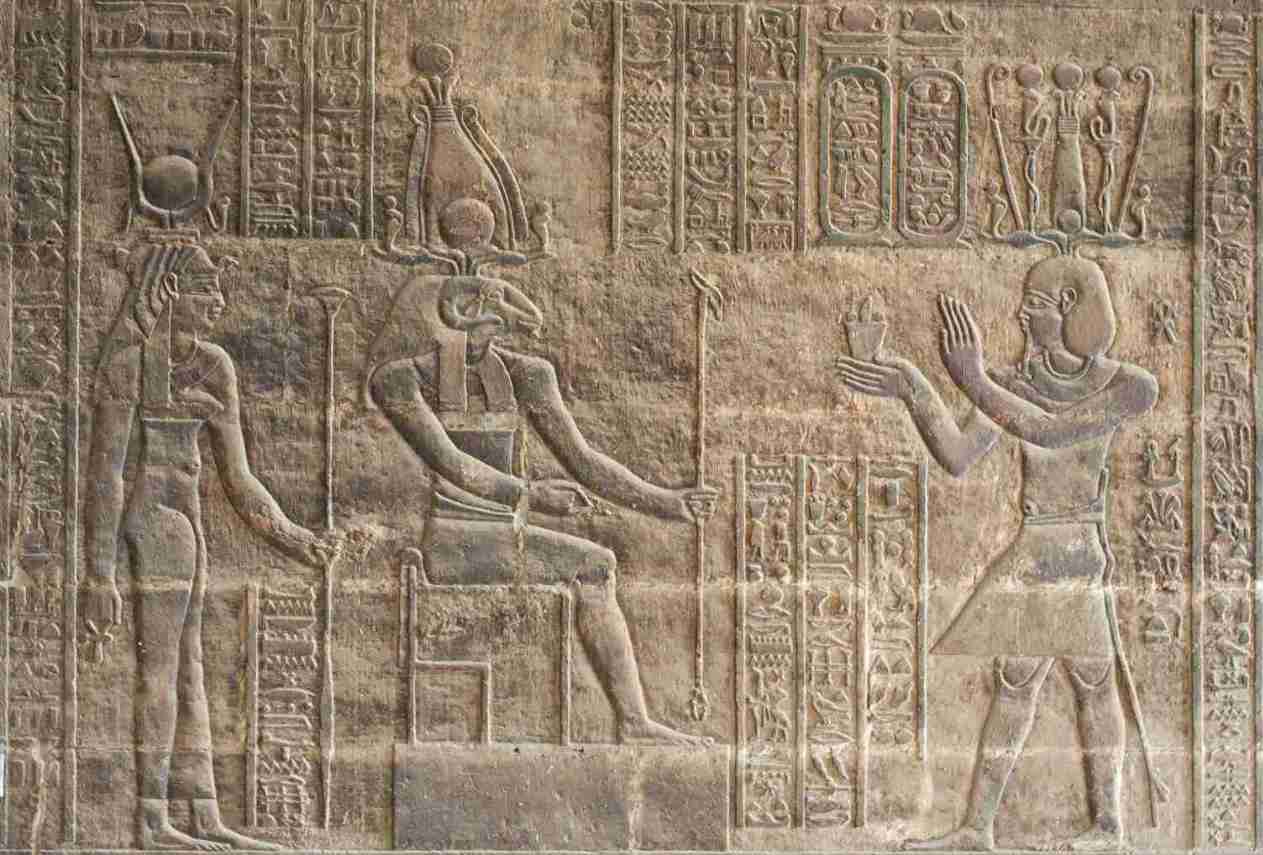 Die heute noch vorhandene Säulenhalle aus ptolemäisch-römischer Zeit markiert die letzte Bauphase des Tempels. Die Kultstätte an sich ist sicherlich weit älter, einige Steinblöcke eines Vorgängerbaus aus der 18. Dynastie haben sich als älteste Hinweise auf einen Kultbau erhalten. Der Tempel war ehemals über eine Prozessionsstraße mit einer Kaianlage am Nil verbunden, diese ist heute noch teilweise erhalten und trägt die Kartuschen des römischen Kaisers Marc Aurel. Der ptolemäische Haupttempel wurde vermutlich beginnend 181 v.Chr. auf den Überresten des thutmosidischen Vorgängers errichtet. Er bestand ehemals aus einer Vorhalle mit sechs Säulen, daran anschließend zwei Vestibülen und dem Sanktuar. Diese Bauelemente waren von einer Mauer umgeben, die mit den Außenmauern des Tempels einen inneren Tempelumgang formte.