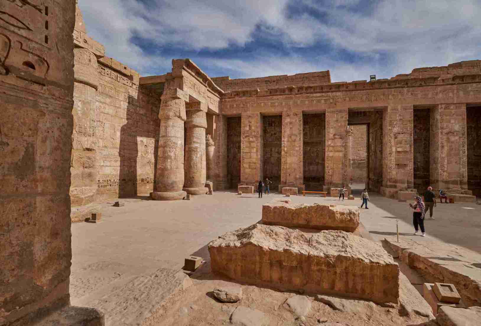 Medinet Habu („Stadt des Habu“) ist der Name des südlichsten Gebietes von Theben West wo Ramses III. in der 20. Dynastie (Regierungszeit ca. 1188-1156 v.Chr.) seinen Totentempel errichten ließ. Der Herkunft des Namens Medinet Habu ist nicht gänzlich gesichert, er könnte vom nahegelegenen Tempel des Amenophis, Sohn des Habu, abgeleitet sein oder bezieht sich auf eine koptische Siedlung innerhalb des Tempelbezirks, die im 5. nachchristlichen Jahrhundert entstanden war. Die alten Ägypter bezeichneten das Gebiet als „Djamet“, dort lagen, nach mythologischer Vorstellung die Gräber der Urgötter (Ogdoad, ein Kollektiv aus vier weiblichen und vier männlichen Gottheiten). Demnach handelte es sich von alters her um heiliges Gebiet; während des Neuen Reiches wurde das Kultbild des Amun von Luxor vom anderen Nilufer alljährlich dorthin gebracht um im Rahme des Zehn -Tage-Festes Rituale für die Urgötter zu vollziehen.