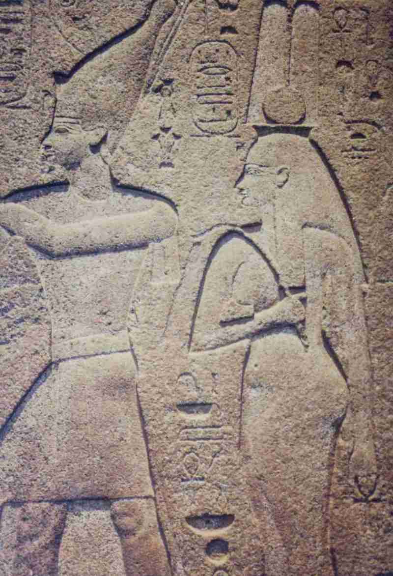Relief aus dem Tempel in Bubastis zeigt Pharao Osorkon & Gemahlin