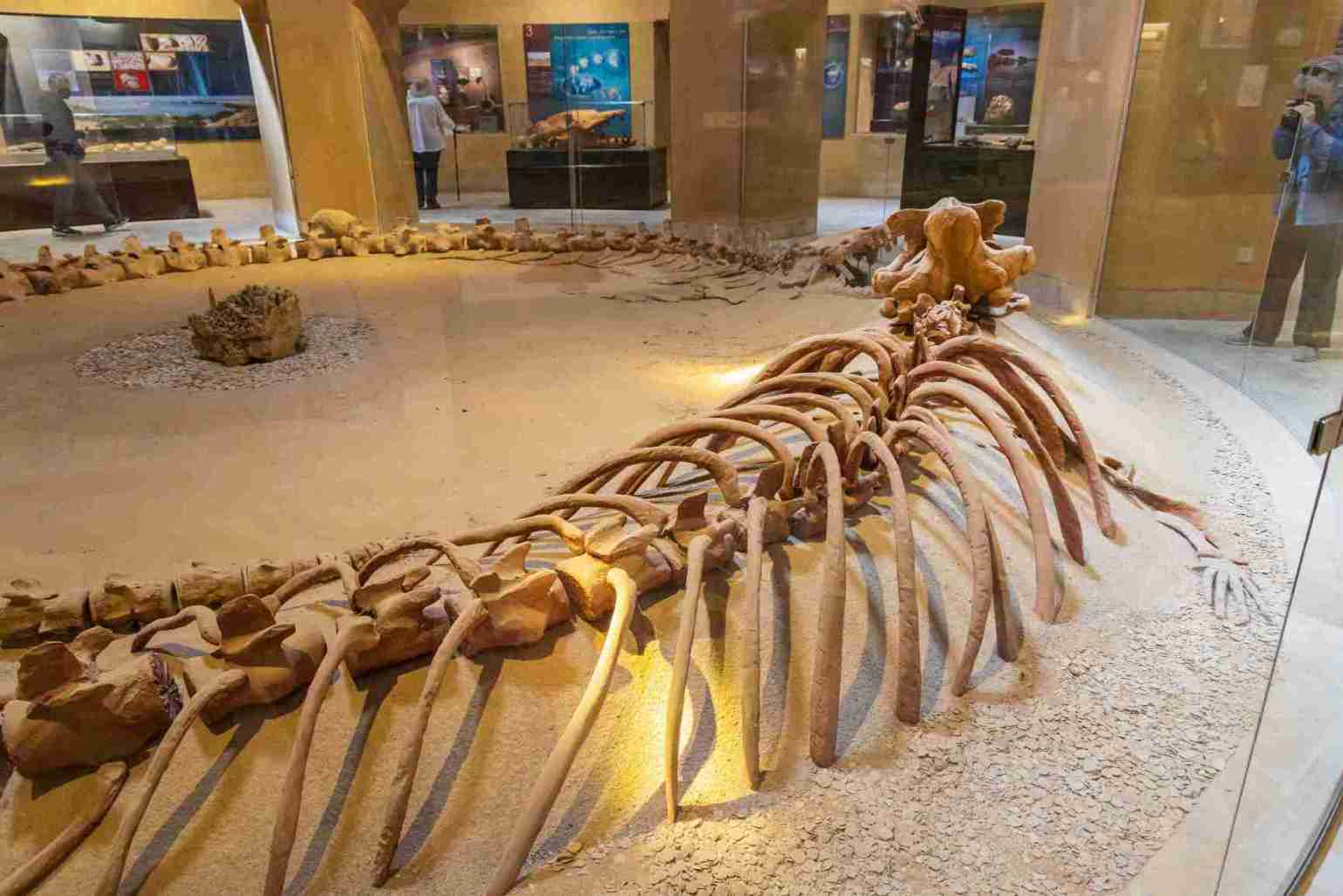 Das Wadi Al-Hitan ist für Forscher und an Paläontologie interessierte Besucher bemerkenswert. Auf dem Weg durch das Tal stößt man immer wieder auf versteinerte Muscheln und Korallen. Am beeindruckendsten sind jedoch die Überreste der prähistorischen Walarten wie den Archaeoceti. Diese Fossilien veranschaulichen die Evolution des Wals. Ursprünglich lebten diese Tiere an Land und begaben sich erst später ins Wasser, wo sie schließlich zum Meeressäuger mutierten. Als Bindeglied gilt der Basilosaurus, von dem man im Wadi Al-Hitan auch ganze Skelette findet. Teilweise sind diese Funde noch in ihrer ursprünglichen Lage zu sehen. Diese Tiere lebten hier vor rund 40 Millionen Jahren im warmen Tehysmeer. Der Basilosaurus ähnelte in seiner Gestalt eher einer Schlange als einem herkömmlichen Wal. Der Saurier zählte in seiner Zeit zu den größten Säugetieren und erreichte eine Länge von 18 Metern. Neben den Walskeletten stößt man auch auf andere Fossilien wie etwa Überresten von prähistorischen Krokodilen oder Fischen. Ferner kann man Haifischzähne oder Knochen ausgestorbener Katzenwelse entdecken und auch Stacheln ehemaliger Seeigel sind zu finden. Außerdem gibt es dort einen versteinerten Mangrovenwald. Man taucht in eine prähistorische Welt ein und kann einen Teil der Evolution hautnah miterleben.