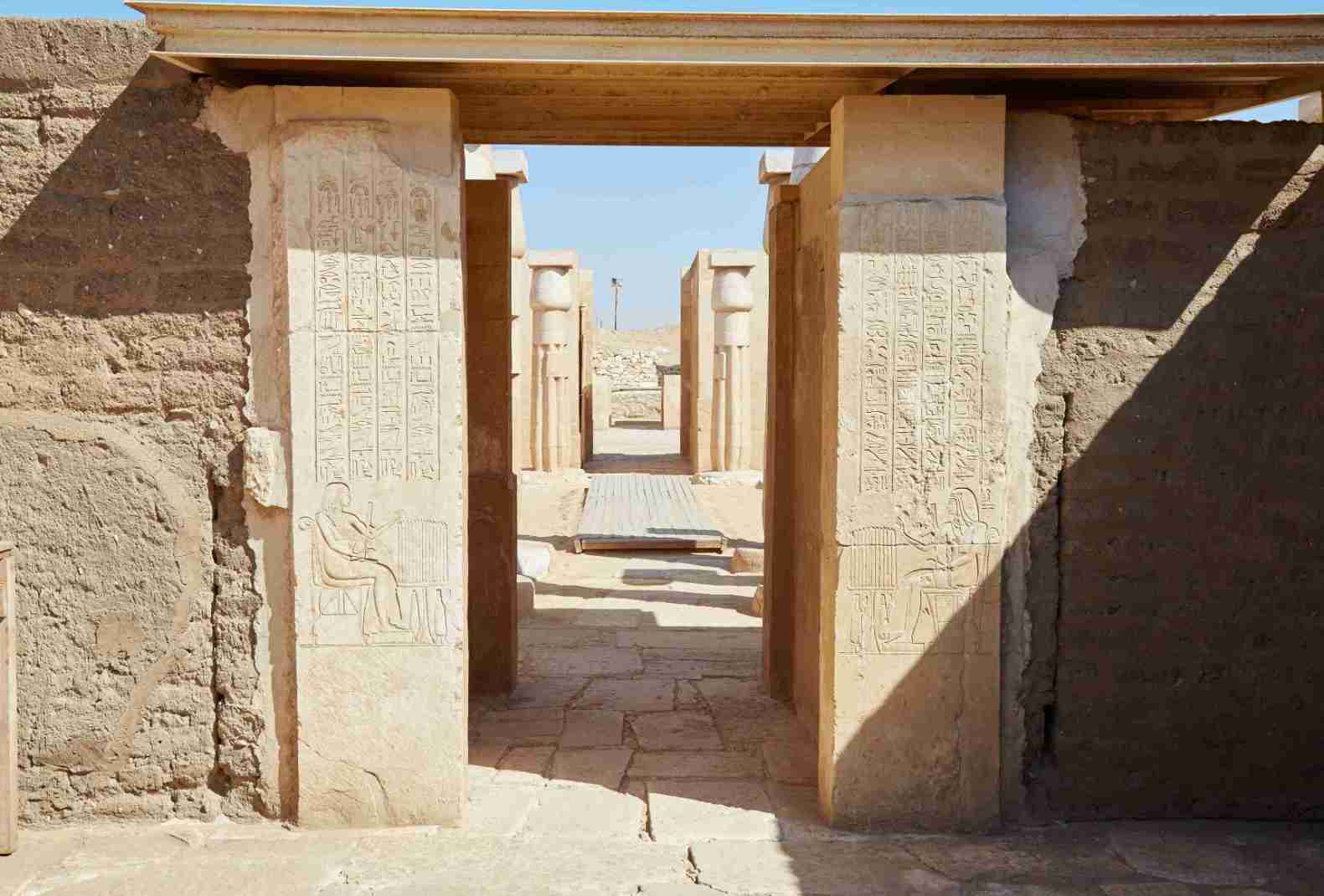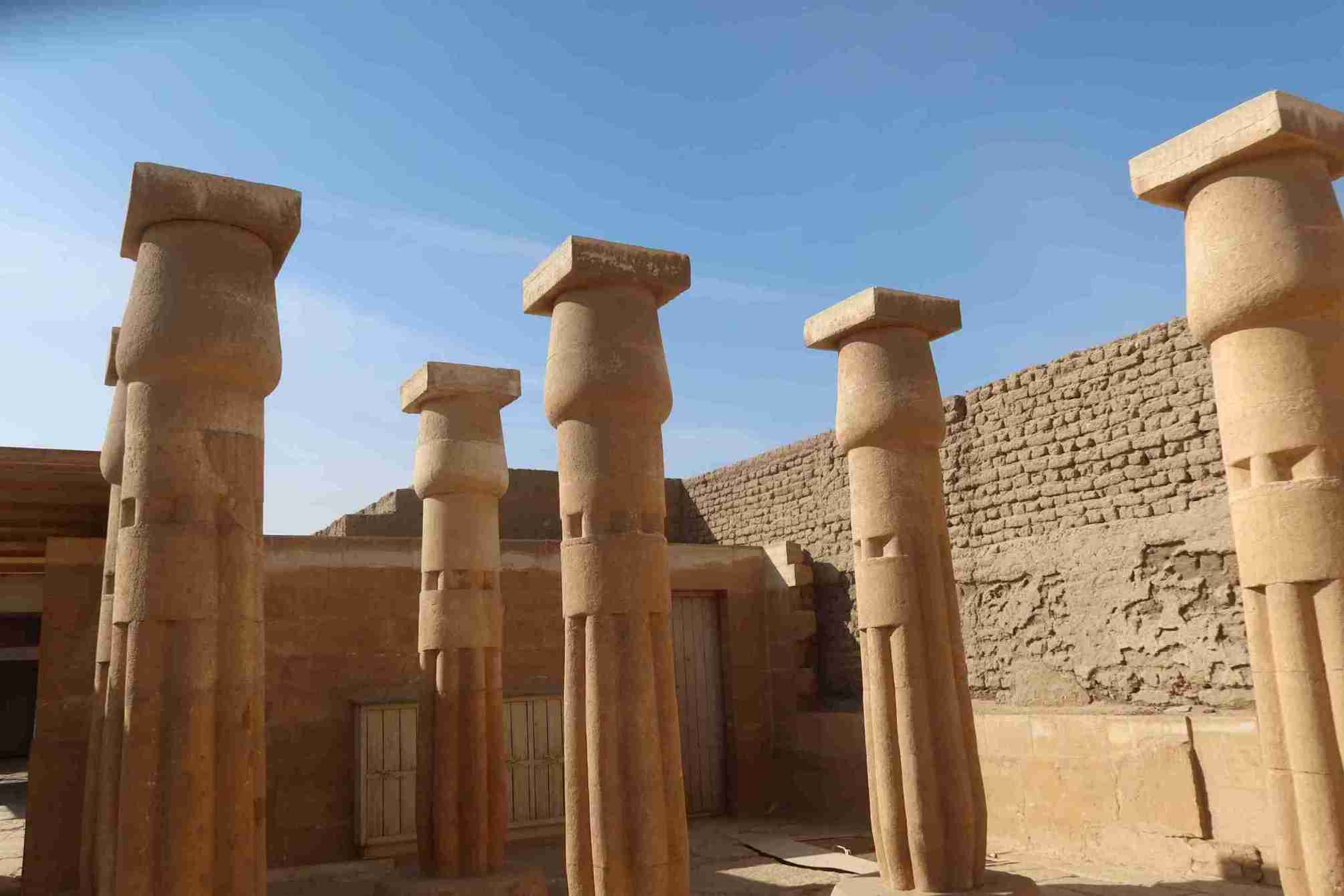 Die Grabanlage Haremhabs in Sakkara wurde 1975 entdeckt, zuvor waren bereits Reliefs von dessen Wänden durch Grabräuber in diverse Antikenmuseum gelangt. Haremhab ließ die Anlage zu der Zeit erbauen, als er noch als hoher General und Verwalter für Tutanchamun tätig war. Nach Regierungsantritt wurde der Bau einer gänzlich konträr gestalteten Grabstätte im Tal der Könige nötig. Das Grab in Sakkara wurde als oberirdische Anlage in einem aufwändigen Stil erbaut, der an die Millionenjahrhäuser, die thebanischen Kulttempel erinnert. In insgesamt drei Bauphasen entstand der von Mauern umgebene Komplex mit erstem Pylon (nicht erhalten), Vorhof, zweitem Pylon, Säulenhof, Statuenraum mit Kapellen, einem zweiten offenen Hof und schließlich dem Opferraum, der von einer kleinen Pyramide überdacht war. Das eigentliche Grab liegt unterirdisch im Bereich des zweiten Hofes, dort wurden die Gemahlinnen Haremhabs, Amenia und Mutnedjmet, bestattet.