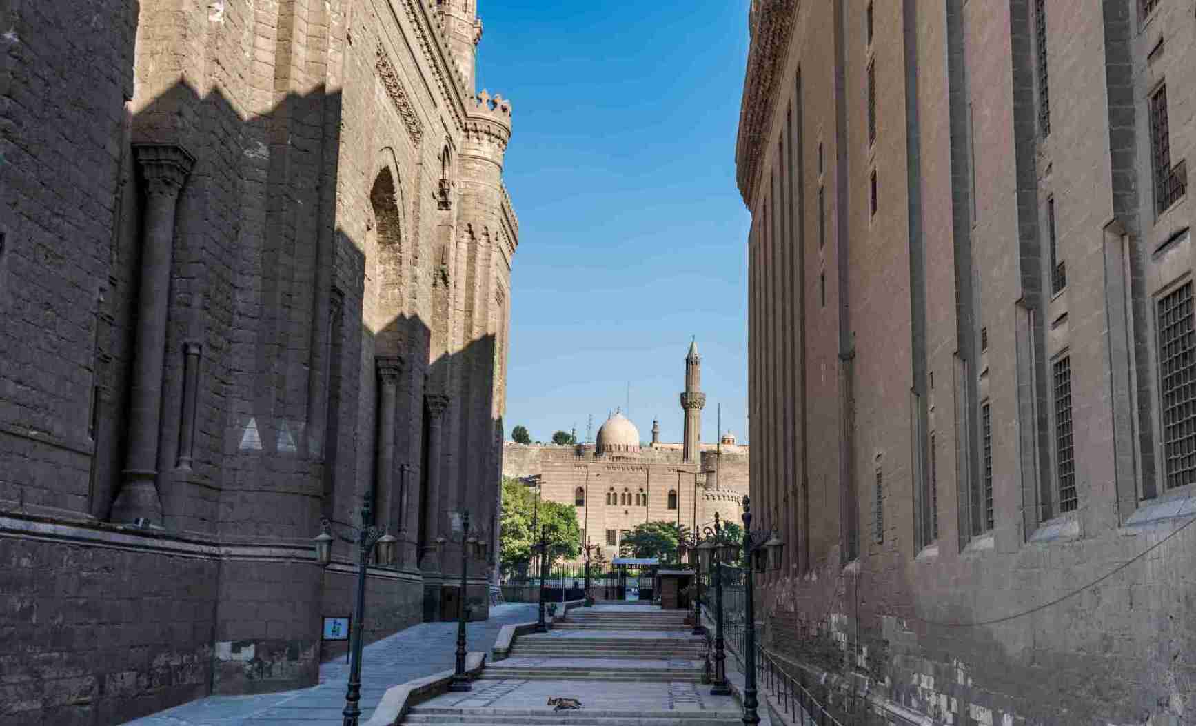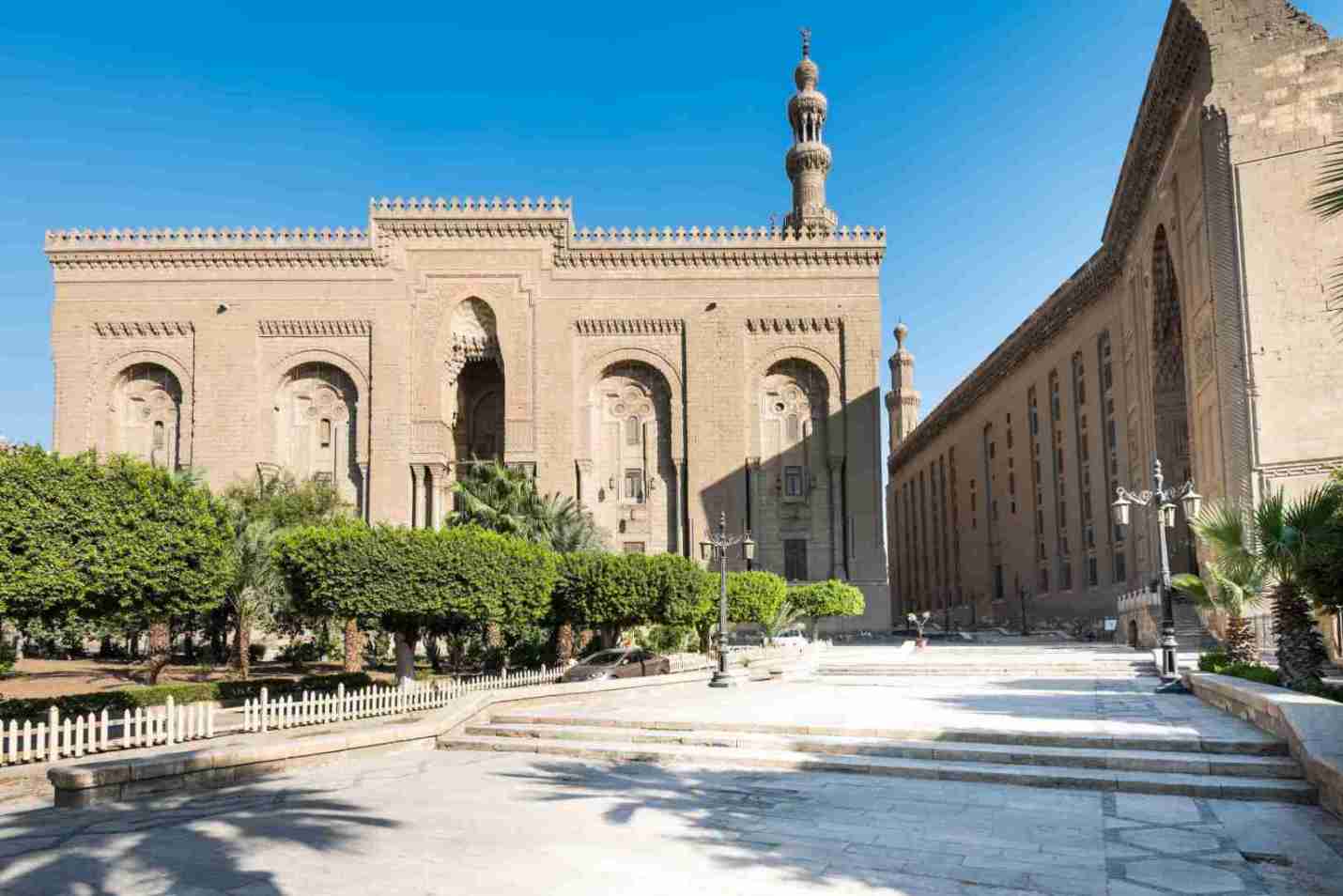 Unweit der Zitadelle und von dieser aus wunderbar anzusehen, dominieren zwei direkt beieinander erbaute Moscheen das Stadtbild. Es handelt sich um die Sultan-Hassan-Moschee und die ar-Rifai-Moschee. Letztere ist ein Bauwerk jüngeren Entstehungsdatums, errichtet zwischen 1869 und 1912. Veranlasst wurde der Bau durch Khushyar Hanim, die Mutter des Khediven Ismail Pascha. Die Bautätigkeit wurde nicht fortlaufend durchgeführt, unter anderem musste Ismail Pascha abdanken und seine Mutter, die Bauherrin, verstarb. Erst nach jahrelangen Unterbrechungen ließ Khedive Abbas II. die Moschee unter der Aufsicht von Max Herz, einem Architekten aus Österreich, vollenden.