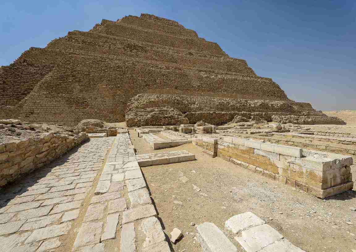 Pharao Djoser herrschte während der 3. Dynastie um die Zeit von ca. 2700-2610 v.Chr. (exakt ist dies nicht zu bestimmen) über einen Zeitraum von etwa zwei Jahrzehnten. Seine Pyramidenanlage in Sakkara ist von herausragender Bedeutung für die weitere Entwicklung altägyptischer Grabanlagen und stellte alles bis dato Bekannte in den Schatten. Zuvor waren Mastabas, rechteckige Lehmziegelbauten, als Begräbnisstätten genutzt worden; einige von diesen Anlagen finden sich noch heute südwestlich der Pyramide. Mutmaßlich unter der Leitung des berühmten Architekten Imhotep entstand mit Djosers Grabkomplex der erste pharaonische Steinbau von gewaltigen Ausmaßen.