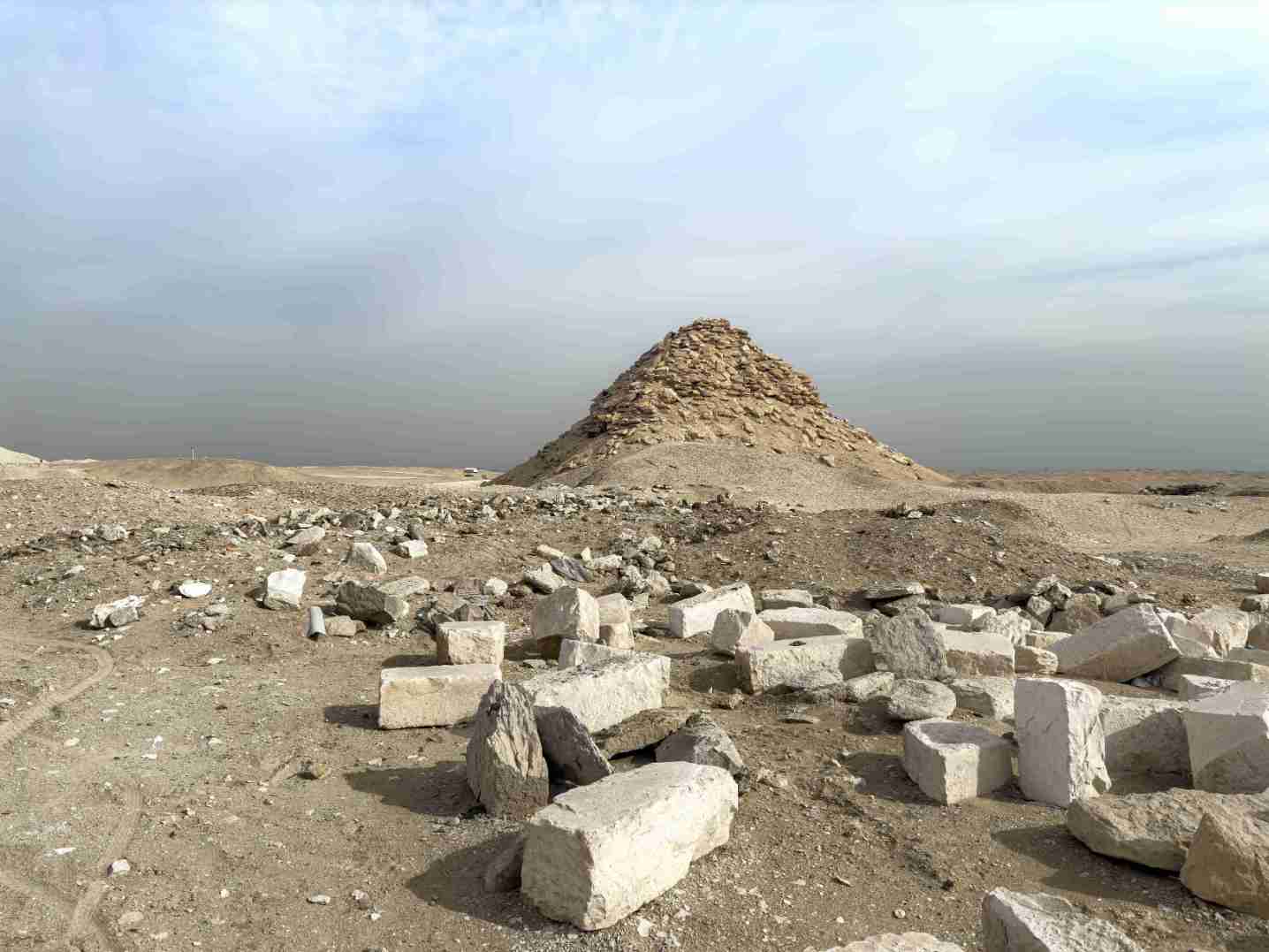 Der Unterbau der Pyramide konnte von einem Zugang direkt vor deren Nordseite betreten werden; das Innere wurde erstmals 1839 vom britischen Ägyptologen J.S. Perring betreten und dokumentiert. Anders als bei früheren Pyramiden liegt der Eingang nicht meterhoch in der Pyramide selbst, sondern ebenerdig. Ein absteigender, mit Granitgestein verkleideter Gang führt 18,5m unter die Pyramide, bevor er weiter waagerecht einen Bereich mit Fallsystem passiert. Von diesem zweigt nach Osten eine T-förmige Kammer ab, eine ungewöhnliche Anordnung ohne zeitgenössische Parallelen. Nach der Fallsteinsperre schießt sich Richtung Süden die exakt im Zentrum der Pyramide liegende Vorkammer an, sie misst 4,1x3,1m² in der Fläche. Deutlich größer ist die mit einem kurzen Zwischengang angeschlossene Grabkammer mit 7,9m Länge und 3,1m Breite. Beide Räume sind mit einer Giebeldachkonstruktion überbaut und waren ehemals mit Tura Kalkstein verkleidet. Die Verkleidung, ebenso wie die gesamte Grabausstattung, war bei Auffindung durch Perring bereits geraubt, auch der in der Hauptkammer noch in situ befindliche Sarkophag aus Basalt war leer. Der gesamte innere Bereich der Pyramide ist, wie zu jener Zeit üblich, undekoriert.