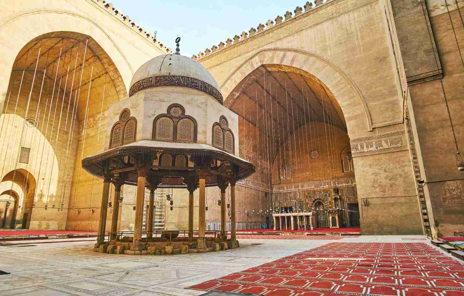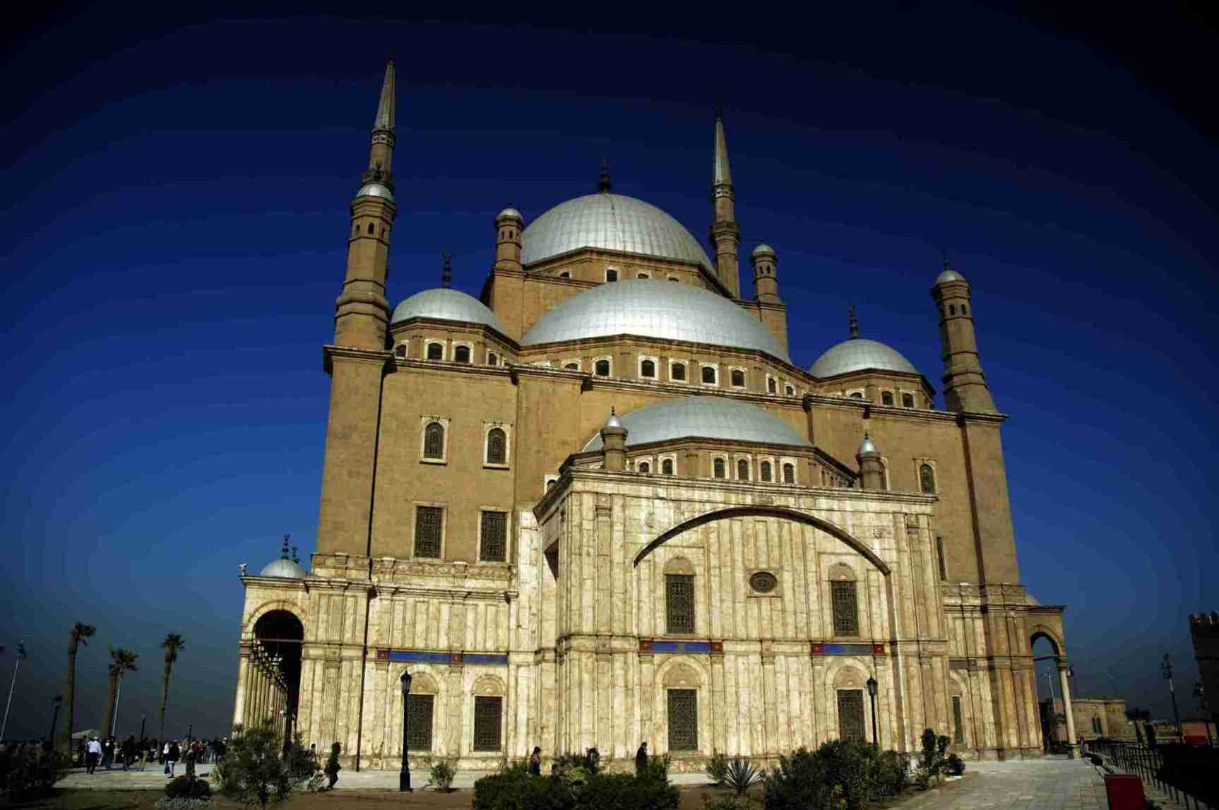 - Besonderheiten: größte Moschee Kairos, Spiralminarett, weitläufiger Hof