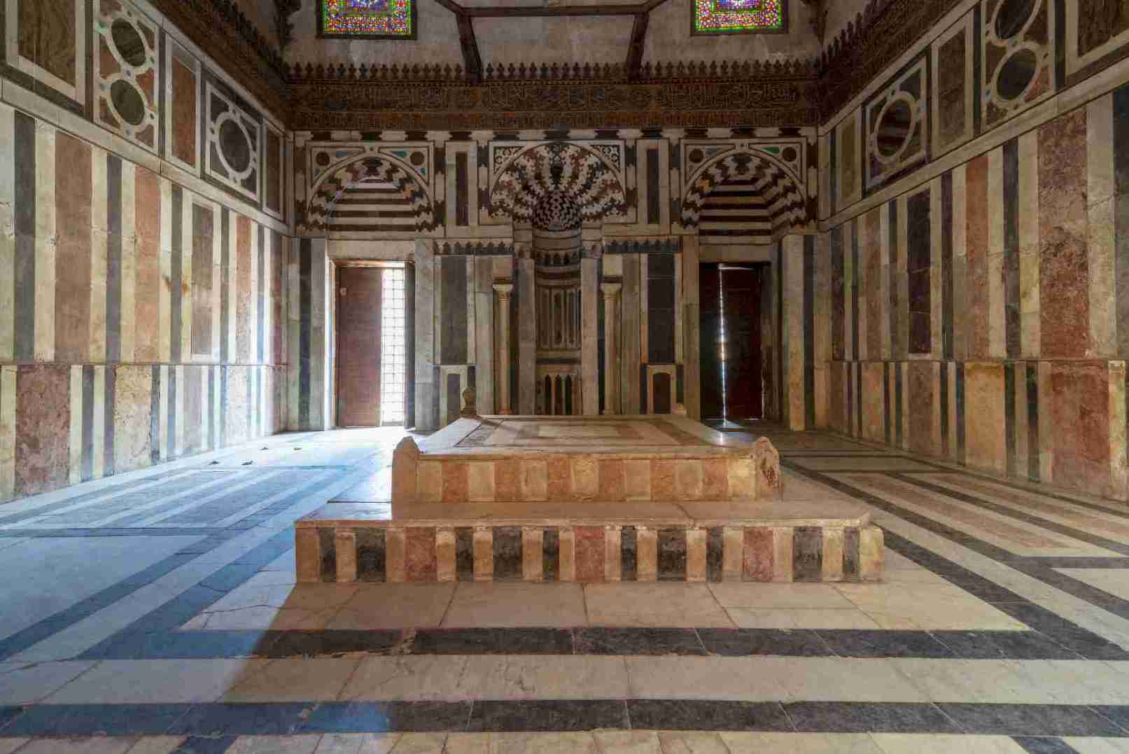 - Besonderheiten: größte Holzkuppelei Ägyptens, Grabanlage berühmten Rechtsgelehrten, kunstvolle Holzschnitzereien